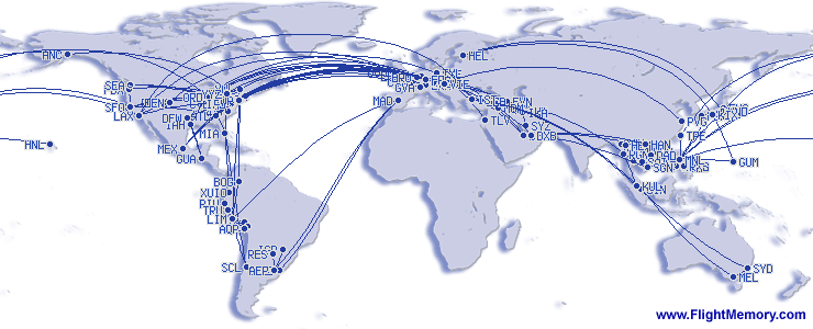 | Najduzi let (daljina): | 7,303 mi, 12:30 h, Manila (Ninoy Aquino International) - Los Angeles (International), 01.08.1985 |