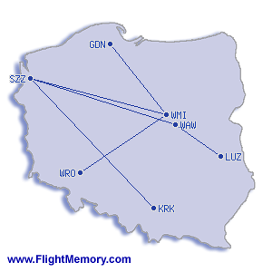 | kürzester Flug: | 158 km, 0:34 h, Lublin (Port Lotniczy) - Warszawa (Frederic Chopin, Okecie), 28.02.2020 |