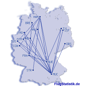 kürzester Flug: 86 mi, 0:39 h, München (Franz Josef Strauß) - Nürnberg (Flughafen Nürnberg), 14.07.2012
