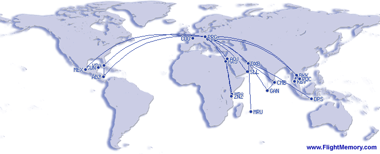 Najdalszy lot: | 9,367 km, 10:54 h, San Andres Island (Gustavo Rojas Pinilla) - Prague (Ruzyne), 2010 |