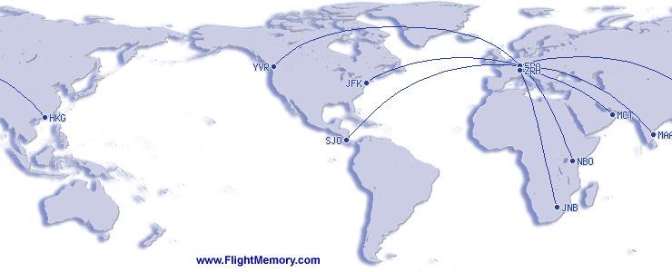 | เที่ยวบินที่สั้นที่สุด: | 5,113 km, 6:13 h, Zurich (Kloten) - Muscat (International), 23.01.2026 |
