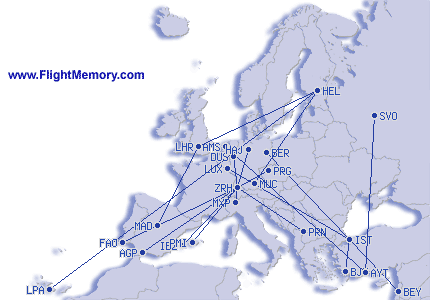 | Наиболее короткий полет: | 203 km, 0:44 h, Mailand (Malpensa) - Zürich (Kloten), 03.10.2025 |