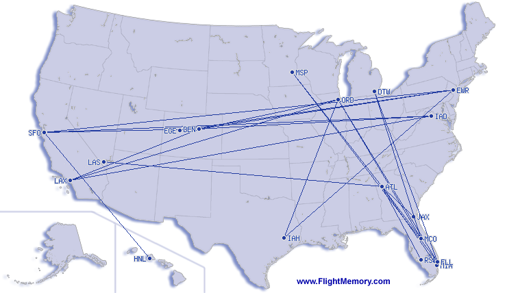| kürzester Flug: | 435 km, 2:19 h, Jacksonville (International) - Atlanta (Hartsfield - Jackson Int.), 22.03.2026 |