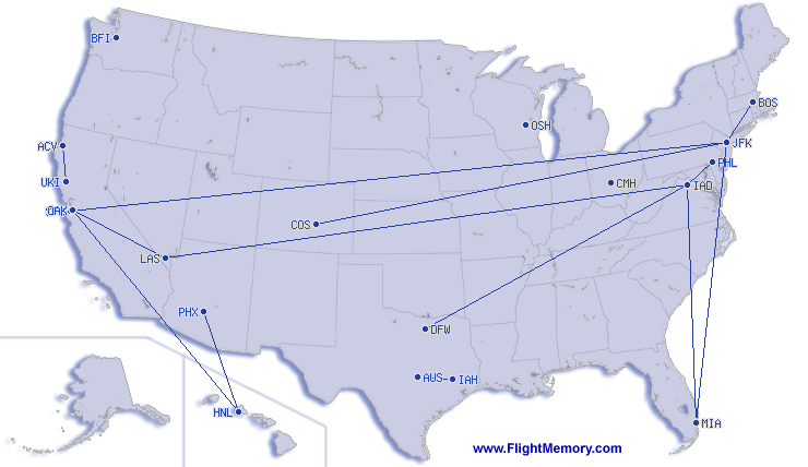 | weitester Flug: | 11,639 km, 6:40 h, London (Heathrow) - Honolulu (Daniel K. Inouye Int.) |