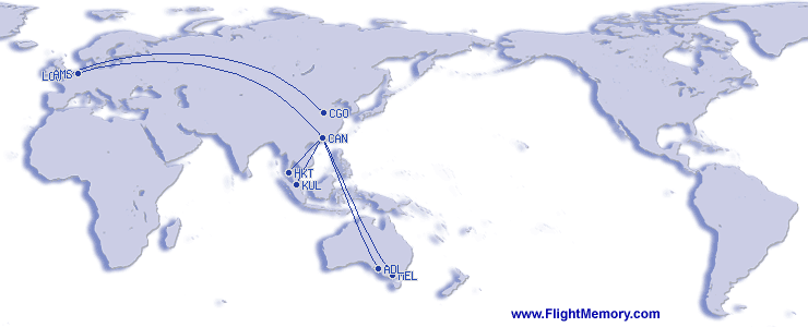 | Voo mais longo (Distância): | 9,150 km, 10:40 h, Amsterdam (Schiphol) - Guangzhou (Baiyun), 13.12.2025 |