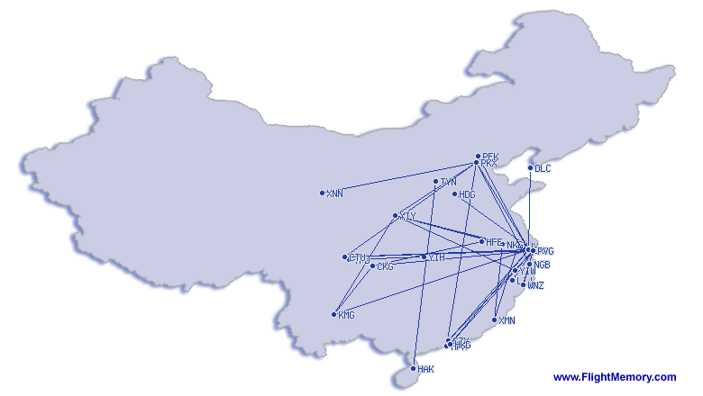 | kürzester Flug: | 268 km, 0:48 h, Shanghai (Pudong) - Yiwu, 15.03.2026 |