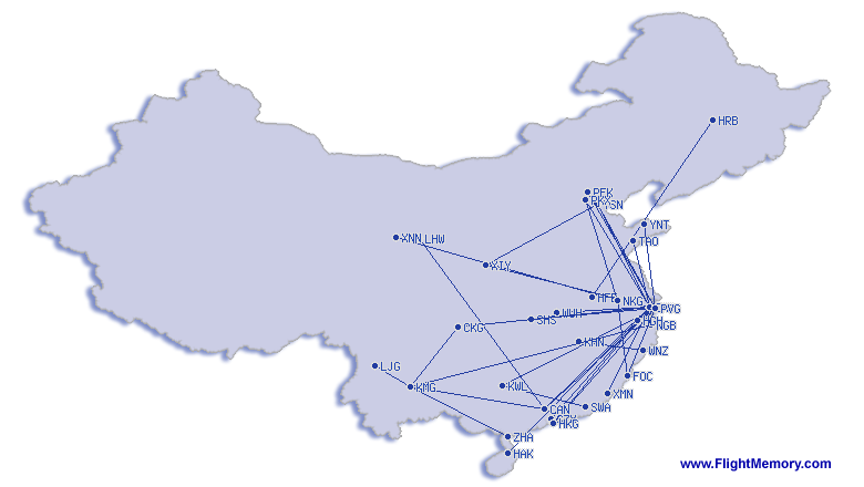 | Kortast flygsträcka: | 166 km, 0:41 h, Shanghai (Pudong) - Hangzhou (Xiaoshan), 18.11.2025 |