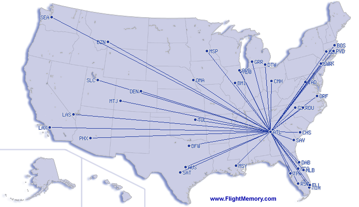 | kürzester Flug: | 345 km, 0:53 h, Savannah (Hilton Head International) - Atlanta (Hartsfield - Jackson Int.), 06.02.2026 |