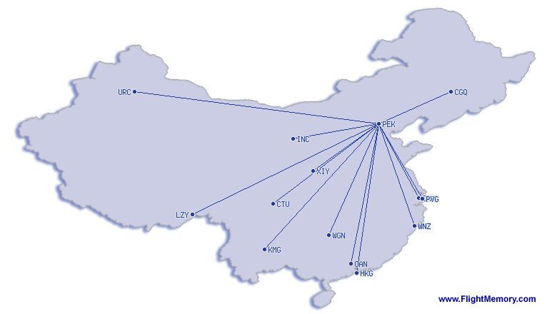 kürzester Flug: | 830 km, 1:25 h, Changchun (Longjia) - Peking (Capital), 19.10.2025 |