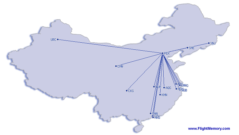 | kürzester Flug: | 606 km, 1:35 h, Peking (Capital) - Shenyang (Taoxian), 13.04.2026 |