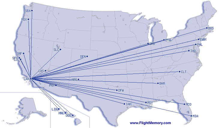 kürzester Flug: | 381 km, 0:40 h, Las Vegas (Harry Reid International) - Los Angeles (International), 15.10.2025 |