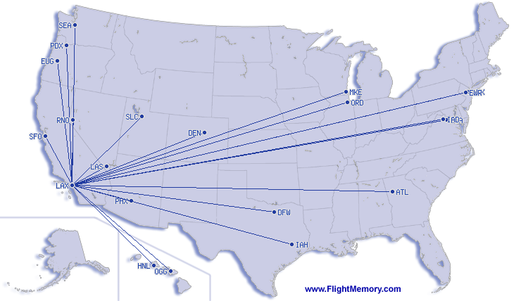 | kürzester Flug: | 381 km, 0:44 h, Las Vegas (Harry Reid International) - Los Angeles (International), 03.12.2025 |