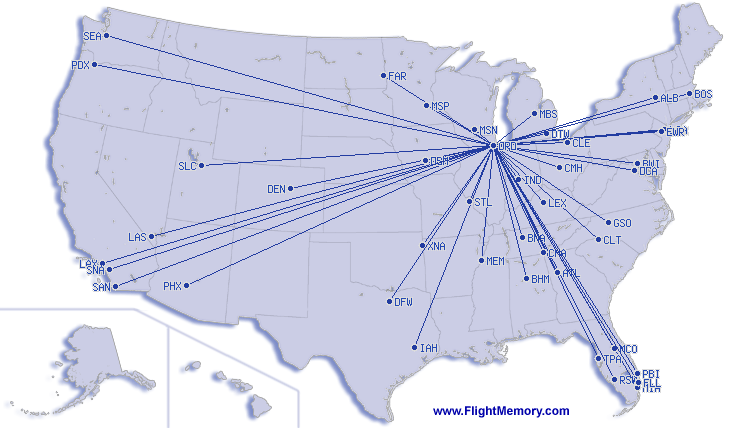 | kürzester Flug: | 175 km, 0:56 h, Madison (Dane County Regional) - Chicago (O'Hare), 14.01.2026 |