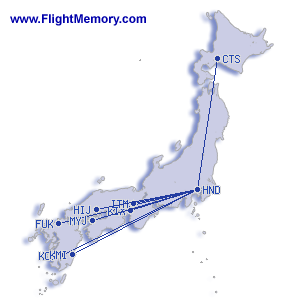 | 最短航程: | 405 km, 0:57 h, Osaka (Itami International) - Tokyo (Haneda), 24.03.2026 |