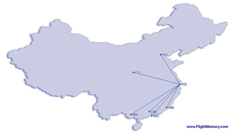 | kürzester Flug: | 678 km, 0:28 h, Taipei (Taoyuan International) - Shanghai (Pudong), 16.03.2026 |
