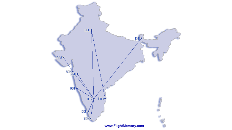 | kürzester Flug: | 271 km, 0:33 h, Bangalore (Kempegowda International) - Chennai (International), 19.03.2024 |