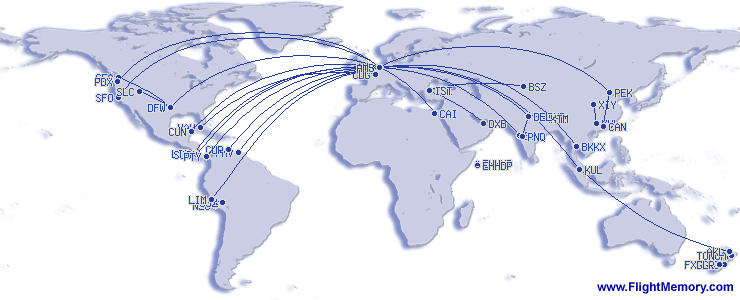 | Penerbangan Paling Jauh: | 10,532 km, 12:43 h, Amsterdam (Schiphol) - Lima (Internacional Jorge Chavez), 20.04.2013 |