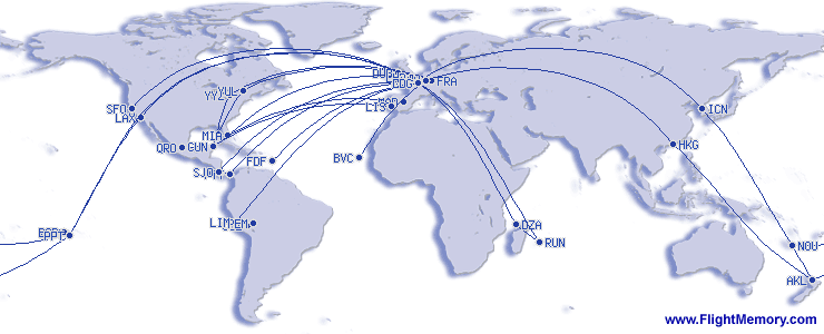 | Даўжэйшы палёт (па адлегласці) : | 15,732 km, 22:30 h, Paris (Charles de Gaulle) - Papeete, Tahiti (Faa'a International), 10.03.2012 |