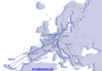 Najkraci let: 21 km, 0:22 h, Friedrichshafen (Bodensee) - St. Gallen (Altenrhein), 08.12.2025