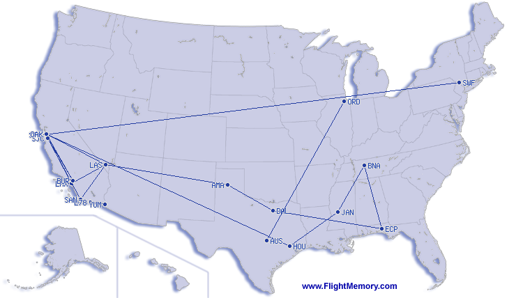| kürzester Flug: | 48 km, 0:30 h, San Jose (Norman Y. Mineta) - San Francisco (International), 21.04.2026 |