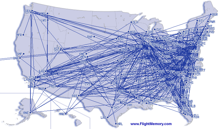 | Najkraci let: | 11 mi, 0:35 h, New York (LaGuardia) - New York (John F. Kennedy), 06-20-2007 |