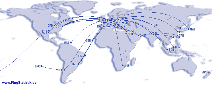 Наиболее длительный полет (по времени):14:57 h, 9.370 km, Tokio (Haneda) - München (Franz Josef Strauß), 13.12.2025