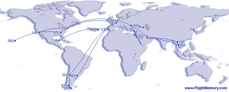 | Voo mais longo (Distância): | 11,686 km, 13:50 h, Santiago de Chile (Arturo Merino Benítez) - Paris (Charles de Gaulle), 10.12.2025 |