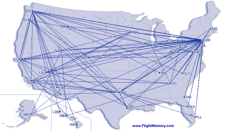 | weitester Flug: | 7,853 mi, 14:33 h, Detroit (Metropolitan Wayne County) - Hong Kong (International), 11-11-2010 |