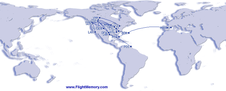 | Lengste flygning (Distanse): | 4,421 mi, 8:40 h, Miami (International) - Madrid (Barajas), 05-01-1998 |
