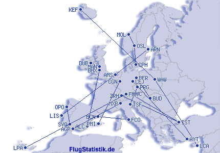 | Št. različnih letališč | 90 |
