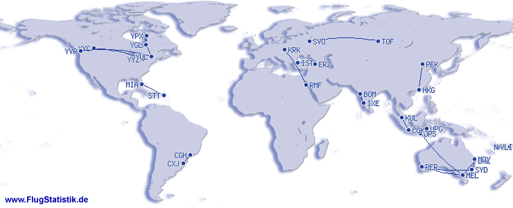 | Št. različnih letališč | 87 |