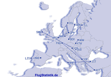 | # | เส้นทางบิน | ครั้ง | เปอร์เซ็นต์ |