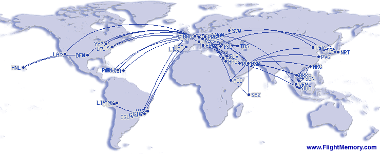 | pikim lend (kestus): | 13:54 h, 10,560 km, Kuala Lumpur (International) - London (Stansted), 16.02.2010 |
