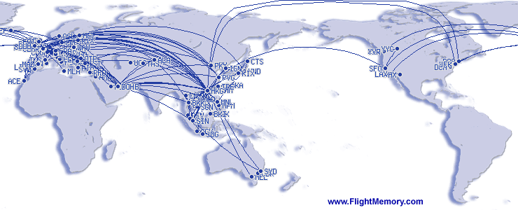 | Najdlhší let (vzdialenosť): | 7,966 mi, 15:11 h, Boston (Logan) - Hong Kong (International), 07.08.2016 |