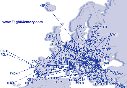 Europaflyvninger![]() Klik på kortet for at forstørre |