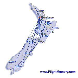 | kürzester Flug: | 107 km, 0:37 h, Auckland - Hamilton |
