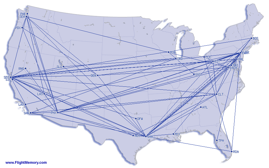 | kürzester Flug: | 80 mi, 1:09 h, Philadelphia (International) - Newark (Liberty), 04.09.2011 |