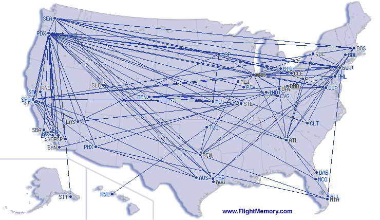 | kürzester Flug: | 80 mi, 0:40 h, Newark (Liberty International) - Philadelphia (International), 11-10-2012 |