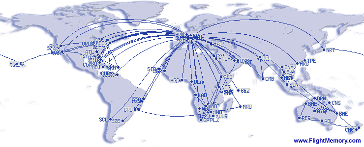 | Najduzi let (daljina): | 11,970 km, 13:48 h, Santiago de Chile (Arturo Merino Benítez) - Zurich (Kloten), 19.12.2008 |