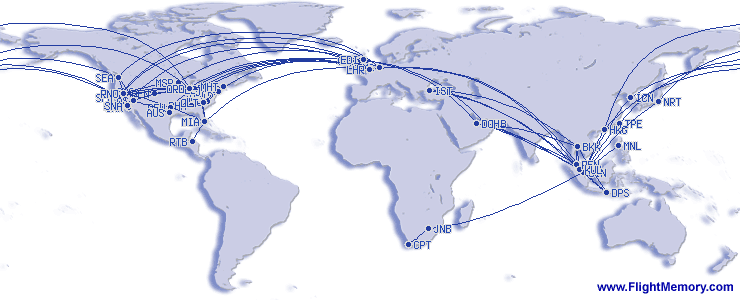 | Nejdelší let (vzdálenost): | 7,790 mi, 14:26 h, Chicago (O'Hare) - Hong Kong (International), 11.06.2004 |