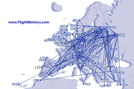 | Gjennomsnitt pr. flygning: | 1,911 km, 2:42 h |