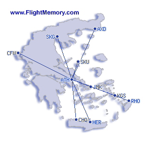 | kürzester Flug: | 77 mi, 0:38 h, Athens (Eleftherios Venizelos) - Skiros (Skyros) |