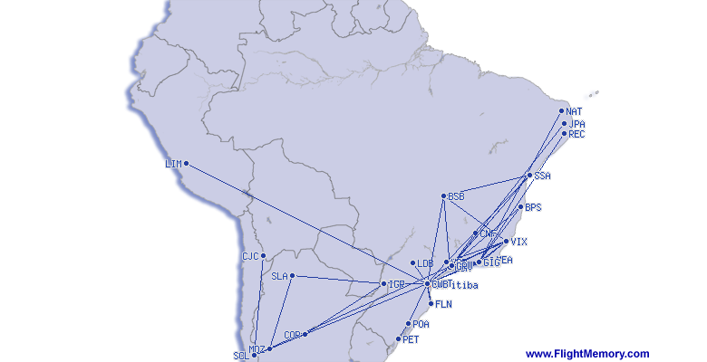 | kürzester Flug: | 157 km, 0:27 h, Rio de Janeiro (Santos Dumont) - Macae, 18.08.2021 |