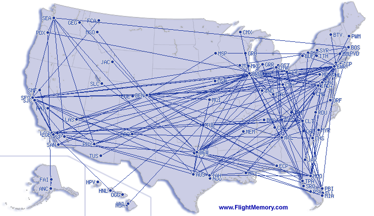 | Najkraci let: | 48 km, 0:08 h, Dallas (Dallas Love Field) - Fort Worth (Meacham International), 08.03.2025 |