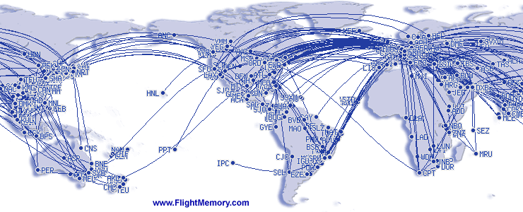 | 最大距離を持つフライト: | 12,778 km, 14:42 h, Cape Town (International) - Washington (Dulles), 03.11.2024 |
