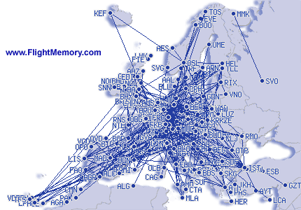 | Gjennomsnitt pr. flygning: | 2,325 km, 3:18 h |