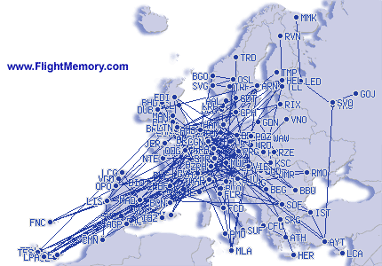 Europaflyvninger![]() Klik på kortet for at forstørre |