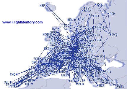 Europaflyvninger![]() Klik på kortet for at forstørre |