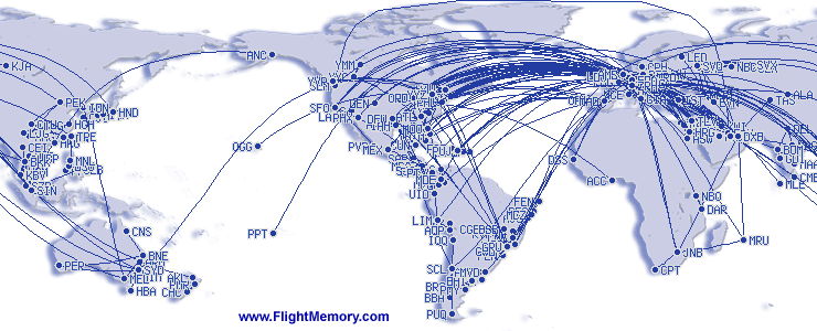 | Verste vlucht: | 13,140 km, 15:00 h, Houston (George Bush Intercontinental) - Dubai (International), 31.03.2022 |