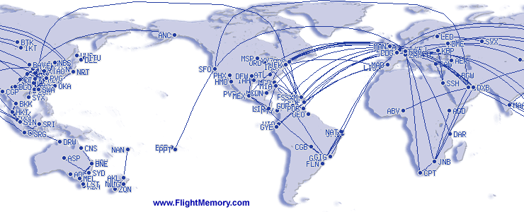 | 平均航线距离及时间: | 2,345 km, 3:18 h |